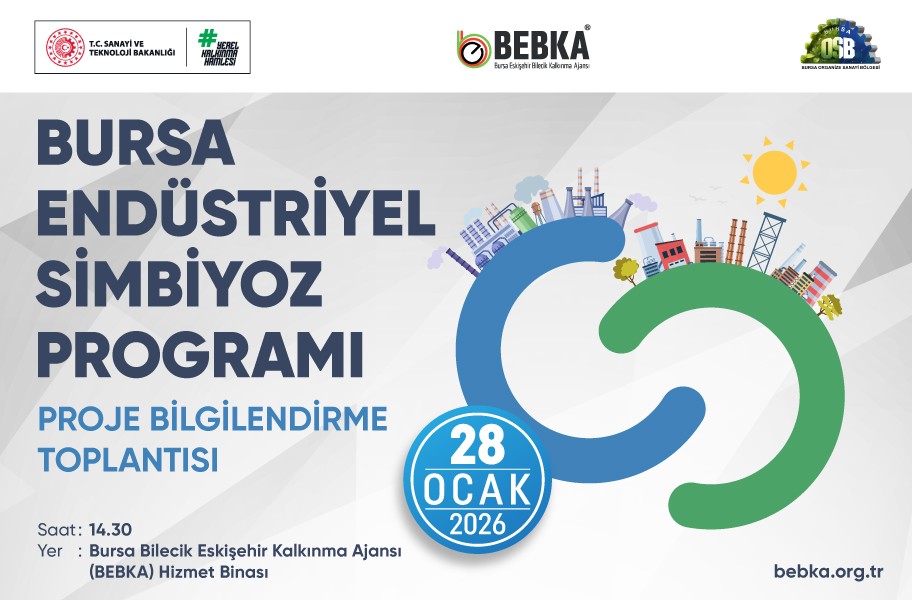 Bursa Eskişehir Bilecik Kalkınma Ajansı (BEBKA) tarafından Bursa OSB iş birliği ile 2026 Bursa'da başlatılması planlanan Bursa Endüstriyel Simbiyoz Programı kapsamında, endüstriyel simbiyoz kavramı, programın kapsamı, hedefleri ve uygulama sürecine ilişkin bilgilendirme yapmak amacıyla Proje Bilgilendirme Toplantısı düzenlenecektir.